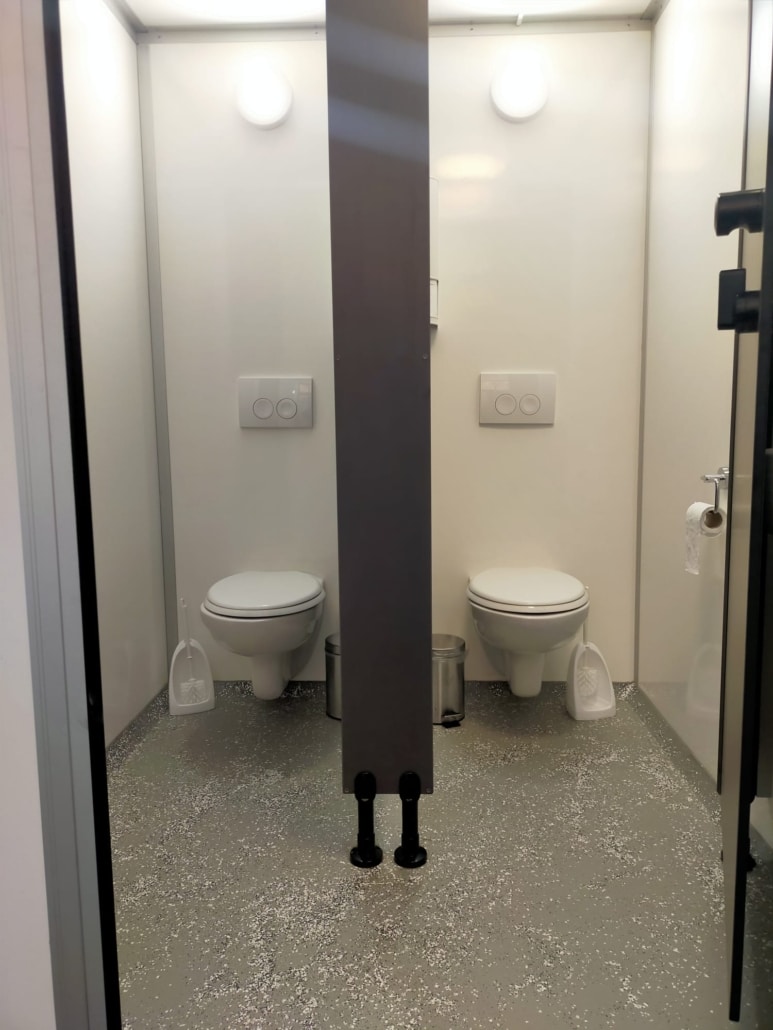 De toiletwagens hebben twee toiletten die genderneutraal of als dames/ heren te gebruiken is. De toiletten beschikken over wastafel met spiegel en zeepdispenser, handdoek en afvalbakje.